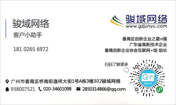 廣州駿域網(wǎng)絡(luò)科技有限公司成立于2005年,是一支由眾多具有多年實踐經(jīng)驗的專業(yè)人士組成的高新技術(shù)團隊,專為企業(yè)提供網(wǎng)站建設(shè)、全網(wǎng)營銷、郵箱等服務(wù),我們擁有嚴(yán)謹(jǐn)?shù)某绦蜷_發(fā)人員、專業(yè)的美工設(shè)計、隨時為您效勞的售后服務(wù)人員,團隊人數(shù)達一百多人。目前我們已經(jīng)榮幸的為廣州眾多知名企業(yè)提供了包括網(wǎng)站建設(shè)、手機網(wǎng)站、小程序、企業(yè)軟件開發(fā)等多種基于互聯(lián)網(wǎng)技術(shù)的服務(wù)。 通過長期積累,駿域網(wǎng)絡(luò)目前已經(jīng)擁有50000多家客戶。